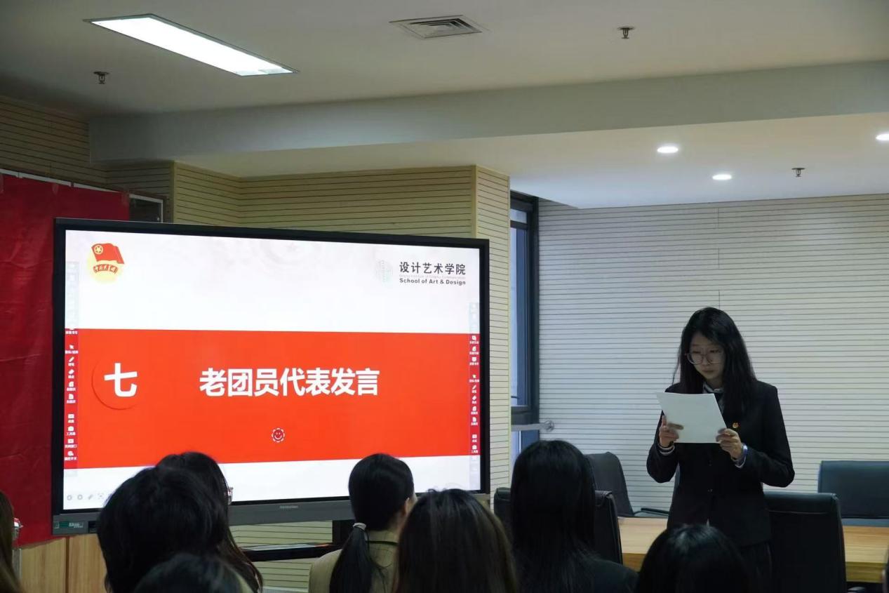 优秀团员代表刘诗雨发言,表达对新团员们的祝贺与欢迎,鼓励新团员们积极参与社会实践,努力学习,按照团员标准严格要求自己,自觉承担起团员应该承担的责任。