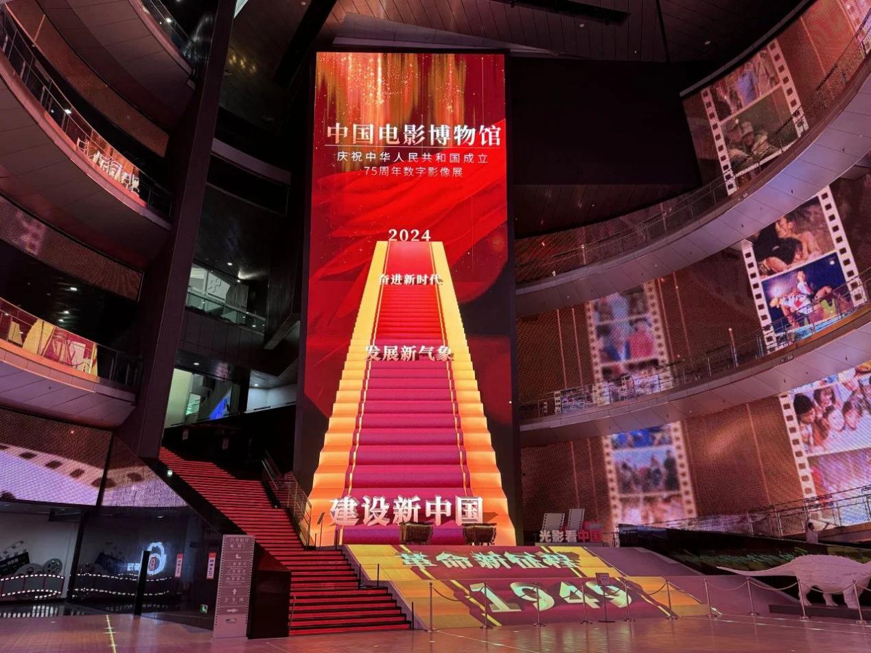 9月29日,在中华人民共和国成立75周年之际,中国电影博物馆《光影铭记历史 银幕绘就华章——庆祝中华人民共和国成立75周年数字影像展》开幕式举行。中国电影博物馆首次以“数字影像展”的形式举办展览,将展览内容以视频的形式呈现于馆内巨幅屏幕上。该展览视频由中国电影博物馆联合北京印刷学院共同设计创作,是进一步发挥首都的科技创新和人才优势、深化馆校合作的一次生动实践。