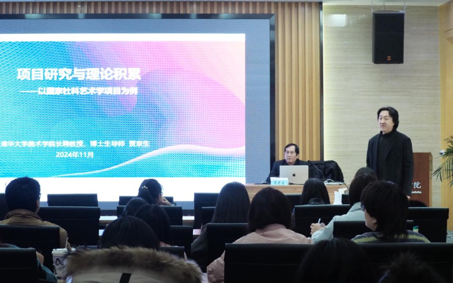 张晓东在致辞中表示,设计艺术学院开展“创新讲堂”系列讲座,旨在帮助师生进一步提升科研能力和理论基础,促进设计学科的长足发展。贾京生教授作为全国艺术科学规划项目专家库专家、教育部人文社科项目评审专家及多家高校和学术机构的重要学术顾问,在艺术学科研究与项目实践领域取得了卓越成就,希望师生们珍惜宝贵的学习机会。