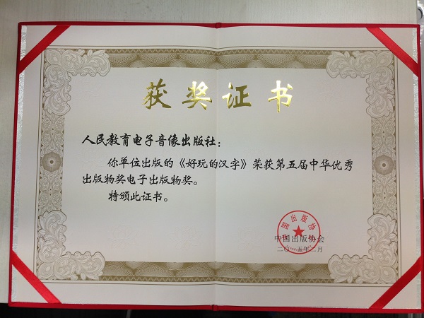 经过严格评审,本届(2012年1月~2013年12月电子出版物)全国共有6部电子出版物最终获得中华优秀出版奖(电子出版物奖)。由我校策划编创制作、人民教育电子音像出版社出版的作品《好玩的汉字》从一个新的角度解读汉字及其丰富文化内涵的创作方法赢得评委会的肯定,并最终荣获本届中华优秀出版奖(电子出版物奖)。至此,我校成为国内唯一一所四次获得中华优秀出版物奖的高校创作单位,再次彰显出北印在多媒体电子出版物设计领域的引导力量。