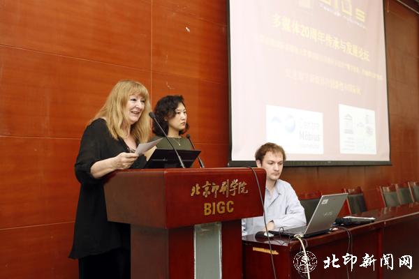 阿兹玛赫发表主题演讲。她介绍了国际莫比斯大奖赛的起源、定义、目标、国际网络、评审标准、奖项成果以及未来发展趋势,"国际莫比斯中心"的作用,以及联合国"数字创新、传输与出版"教席的初衷、意义与作用。她高度评价了北印设艺学院在国际多媒体合作、交流与教育活动中所取得的成就与贡献。