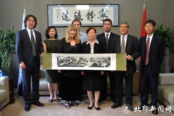 开幕式结束后,刘超美与许文才在第二会议室与阿兹玛赫进行会谈。许文才向来宾简要介绍学校基本情况和北印设艺学院的发展。刘超美表示,开幕式阿兹玛赫女士的演讲主题非常新颖,北印也将考虑如何把演讲所谈到的内容与学校发展联系在一起。刘超美还向来宾介绍了北印正在推进的外培计划,在把握好国内外形势的前提下整合各种资源,提高办学的国际化起点。阿兹玛赫同意刘超美的观点,认为信息化时代的发展打破了国界的疆域限制,需要开拓学生的国际视野、增加国际交流。
