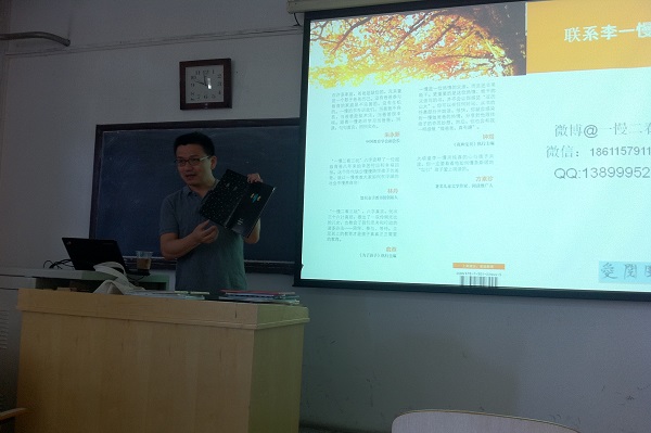 6月12日,新阅读研究所李一慢老师,在教C楼410为设计艺术学院美术系出版绘画专业12、13级学生举办了《儿童的绘本》讲座。