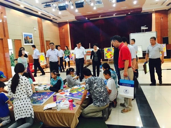 一年来,设计艺术学院积极组织40多位优秀教师和学生前往六所对口小学,开展手指创意画课程。画展展出的六十余幅作品是设计艺术学院对口支持美术教育体现,是师生共同精心创作的成果,凝聚了大学生与小学生深情厚谊。到场领导嘉宾和六百多名小学生们参观了手指创意绘画展,部分小学生进行了现场绘画创作,将现场氛围推向顶峰。