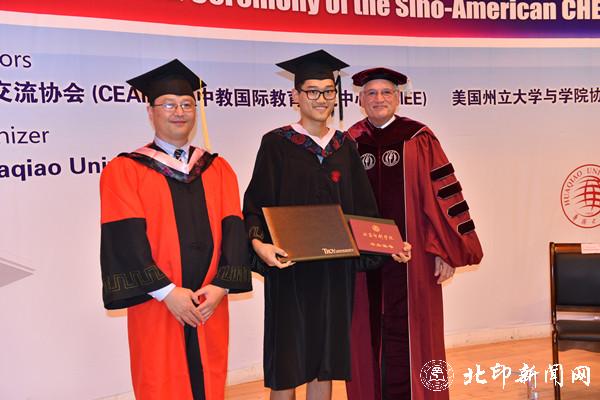 美国特洛伊大学校长与国际教育学院院长共同为柏杨颁发中美双方学位证书