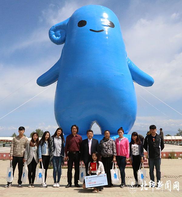 8月10日,由北印14级研究生许笙慧同学设计的青海湖吉祥物——蓝嘟嘟在青海湖二郎剑景区正式亮相。北京印刷学院副校长王关义、设计艺术学院副院长张晓东、刘秀伟教授应邀参加青海湖吉祥物新闻发布会。会上王关义发表了热情洋溢的致辞,许笙慧同学作为创作者,介绍了吉祥物设计、诞生的过程。同时,在青海湖二郎剑景区"非遗商店"推出了由北印13级视觉传达专业杨廓等5名同学设计的吉祥物衍生纪念品。