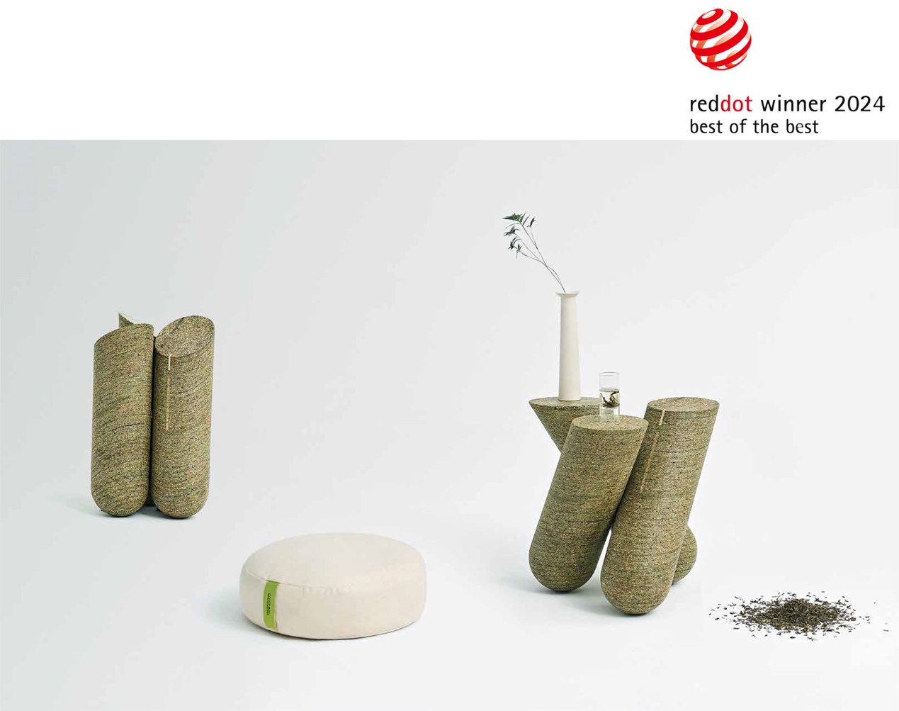 设计艺术学院产品设计团队多年来致力于研究开发生物废弃物的再利用与再设计。本次红点至尊作品《Teable》由重庆阿维塔汽车有限公司、悟与物(上海)有限公司与学校合作,采用了该团队自行研发的100%茶梗废弃物加工制作而成的绿色无污染茶梗板材。