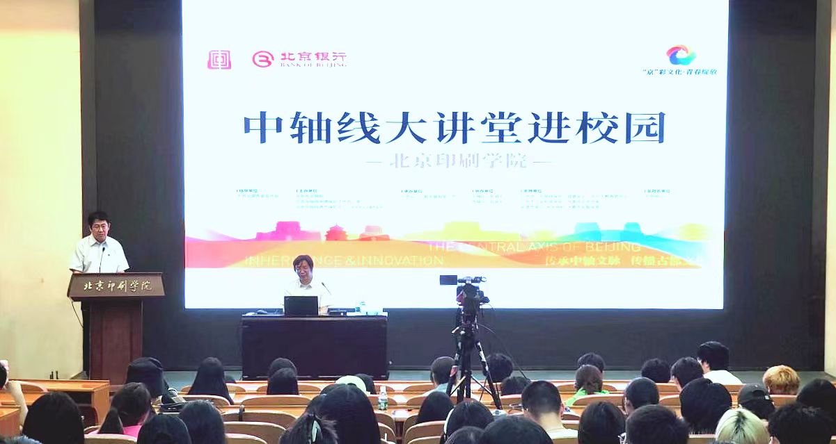 “北京中轴线文化遗产大讲堂”进校园活动是“‘京’彩文化 青春绽放”行动计划“我们都是文化传承者”的项目之一,由“北京中轴线文化遗产传承与创新大赛”组委会为普及北京中轴线文化遗产知识、引导社会大众关注北京中轴线的保护与传承而举办的品牌活动。设计艺术学院师生到会聆听讲座,并与主讲人围绕遗产保护进行了交流。