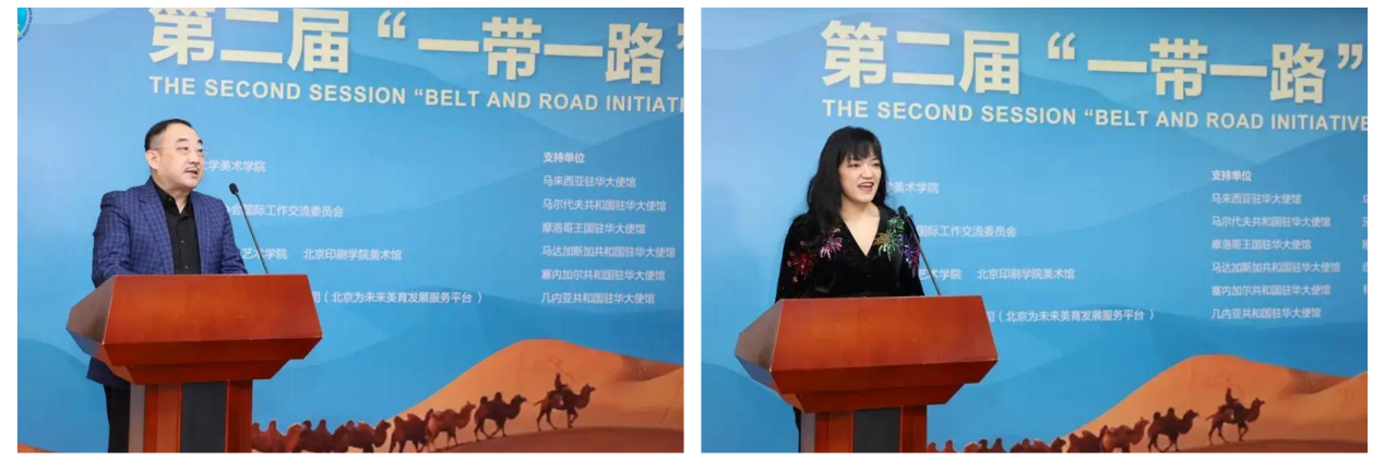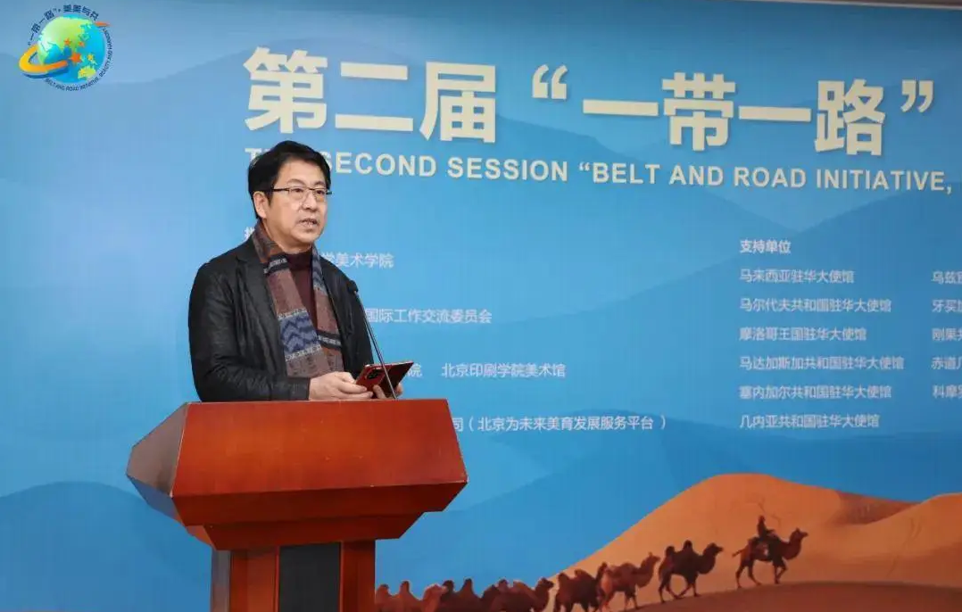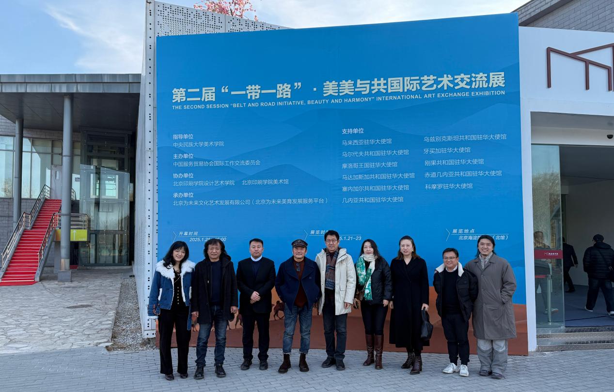 1月21日下午,由中央民族大学美术学院学术指导,中国服务贸易协会国际交流工作委员会主办,北京印刷学院设计艺术学院、北京印刷学院美术馆协办,北京为未来文化艺术发展有限公司承办,马来西亚驻华大使馆、乌兹别克斯坦共和国驻华大使馆、马尔代夫共和国驻华大使馆、牙买加驻华大使馆、摩洛哥王国驻华大使馆、刚果共和国驻华大使馆、马达加斯加共和国驻华大使馆、赤道几内亚共和国驻华大使馆、塞内加尔共和国驻华大使馆、科摩罗驻华大使馆、几内亚共和国驻华大使馆支持的第二届“一带一路”·美美与共国际艺术交流展在北京海淀美术馆(北馆)开幕。