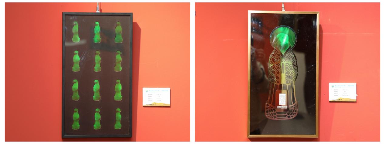 王硕,幻影巳蛇,33×55cm,全息影像;高扬,蛇光幻彩,33×55cm,全息影像、金属